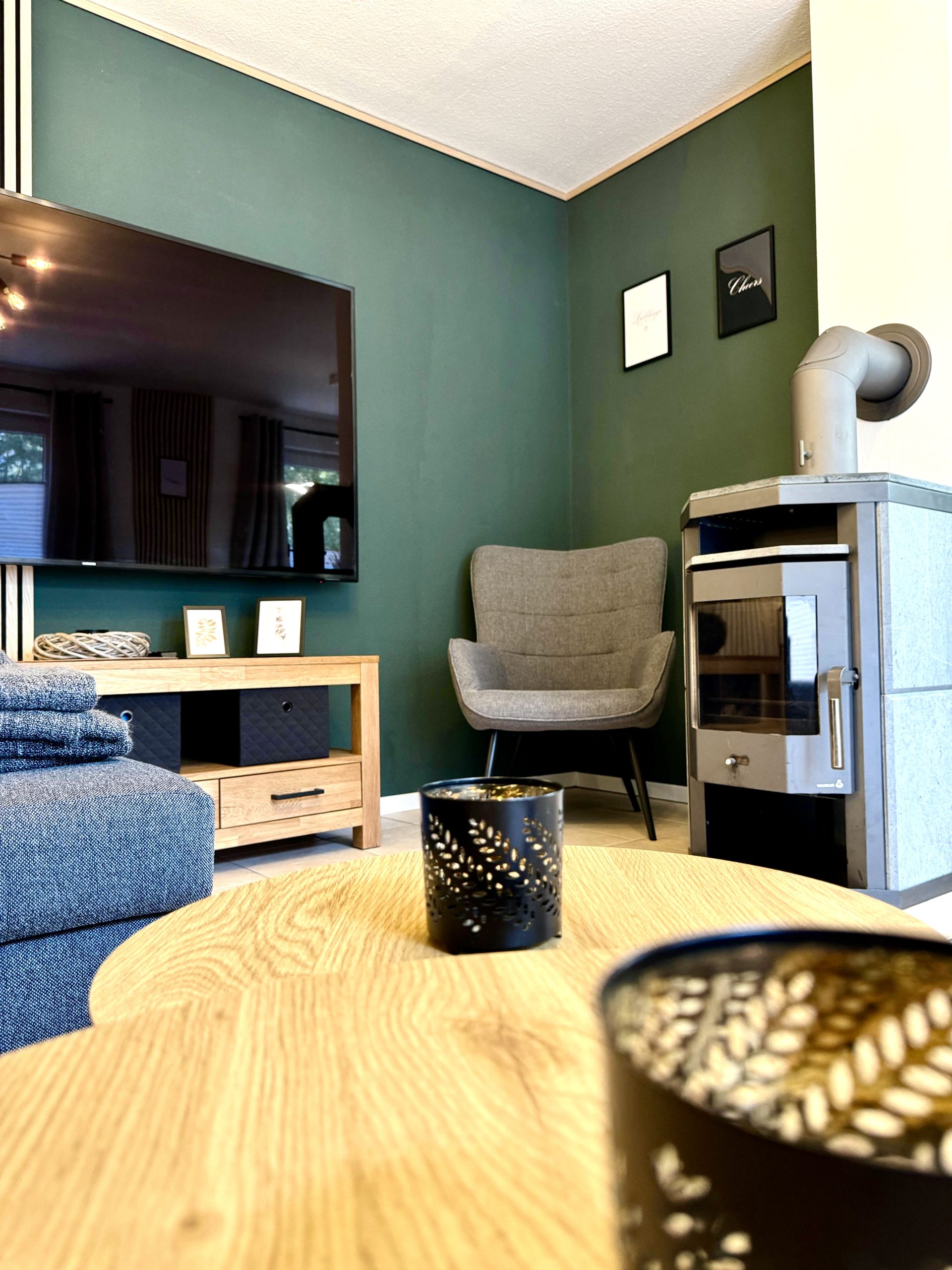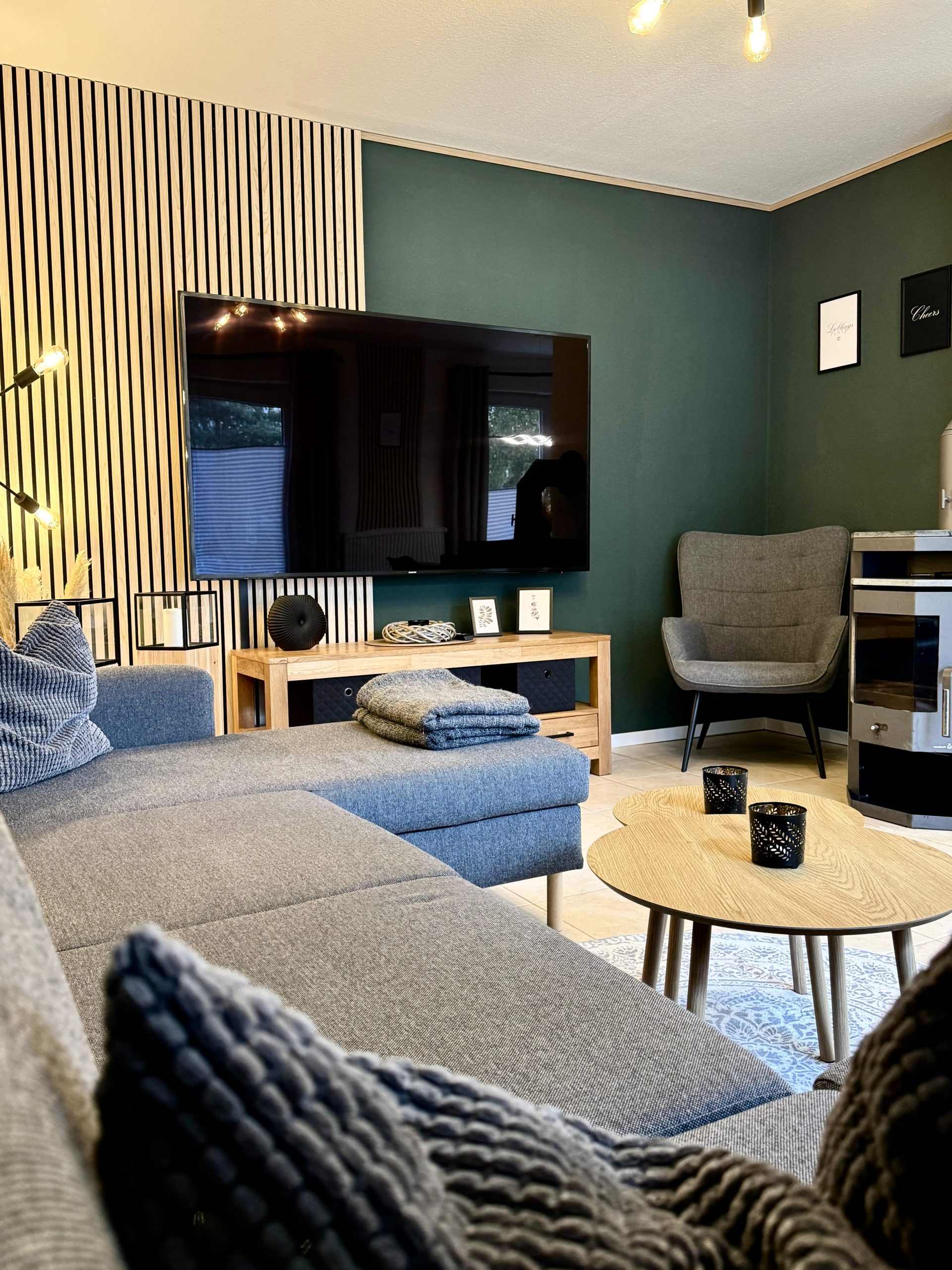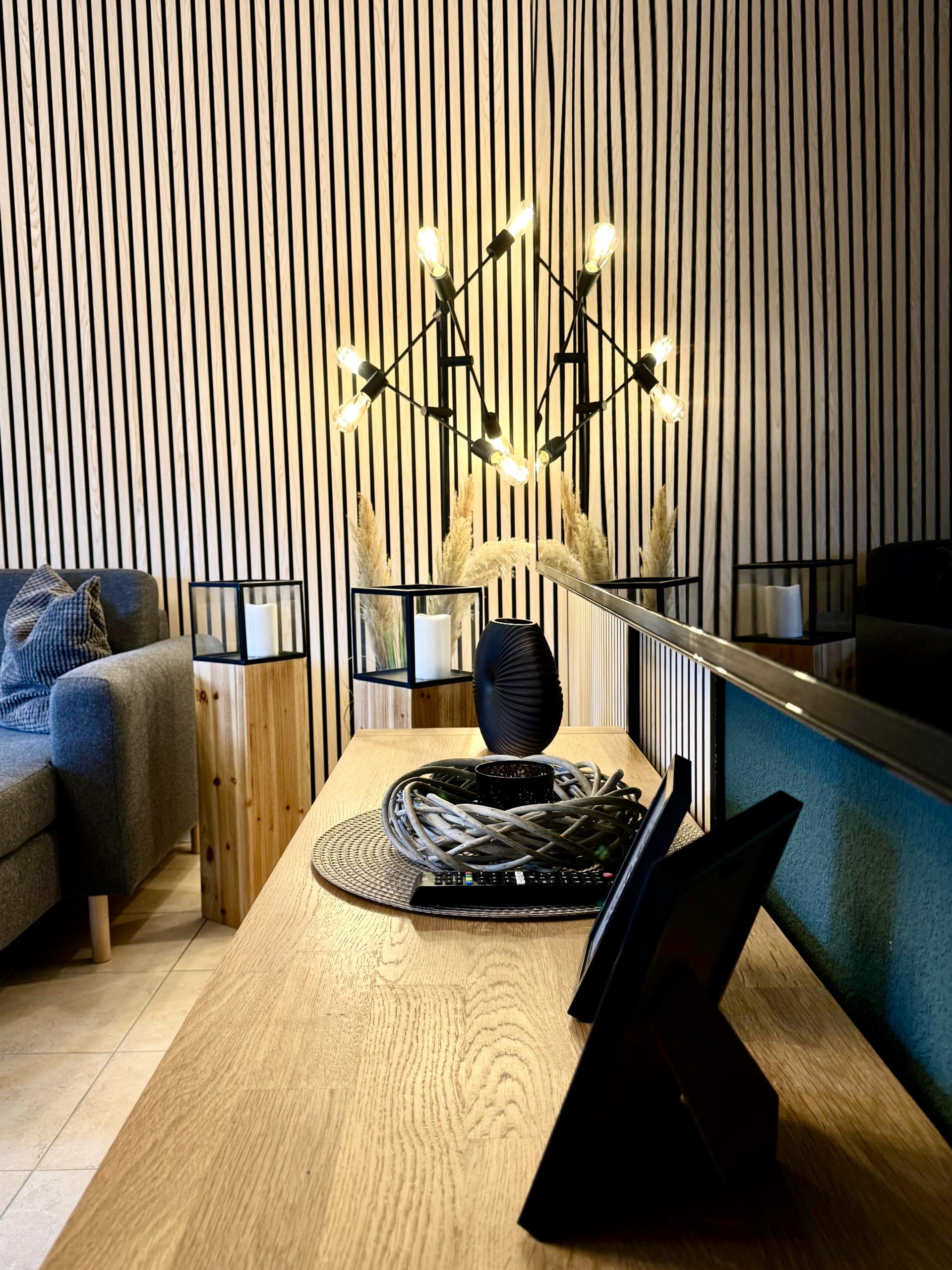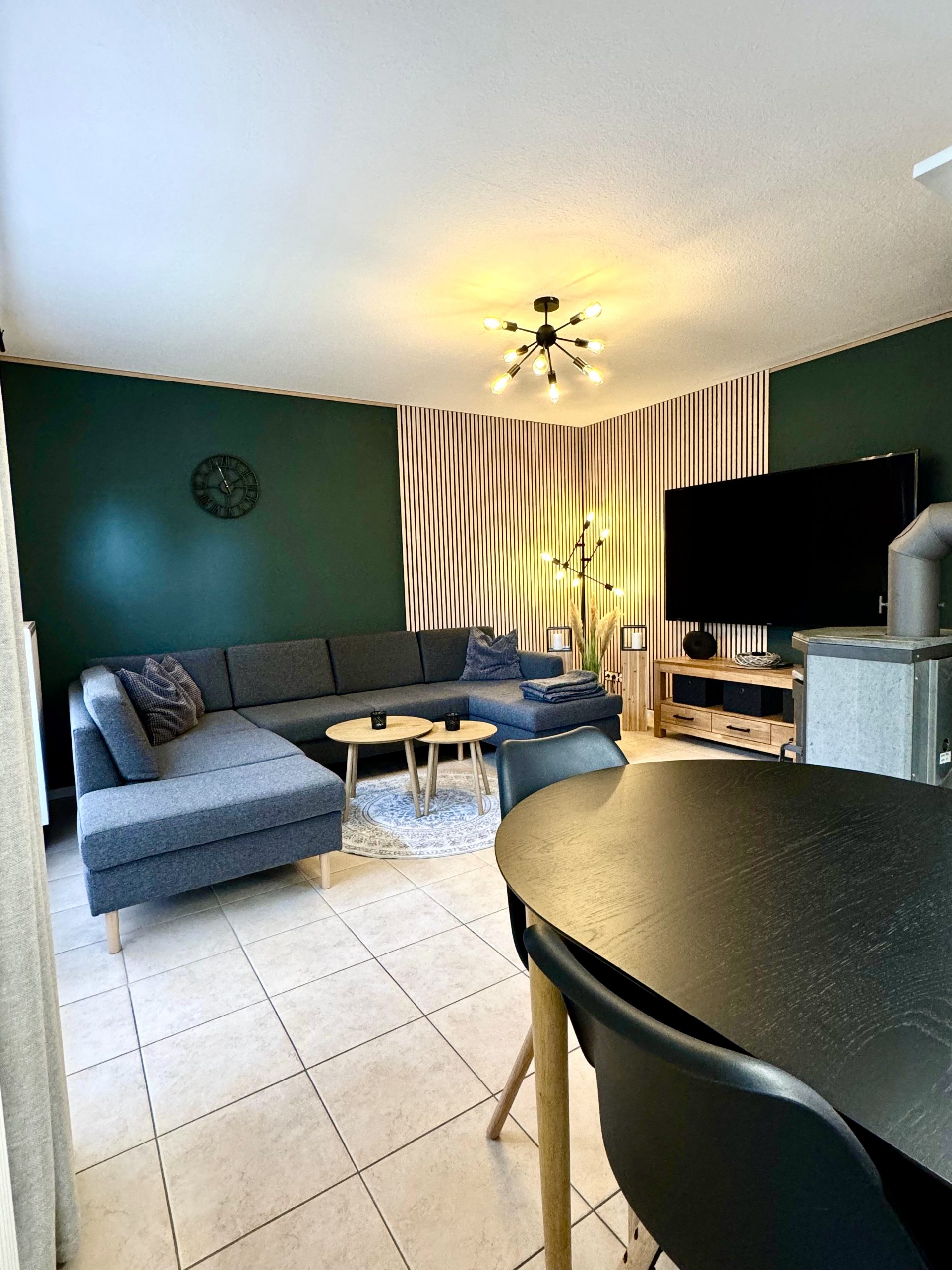 Schlechtes Wetter? Drinnen erwartet Sie zeitloses Design mit modernen Akzenten. Die stilvolle Einrichtung schafft eine besondere Wohlfühlatmosphäre, und im edlen Bad mit Dusche und Wanne können Sie herrlich entspannen.