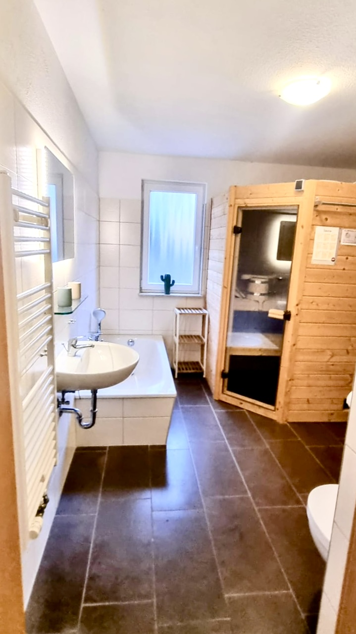Und wenn es draußen mal kühler ist, genießen Sie wohltuende Wärme in der hauseigenen Sauna.